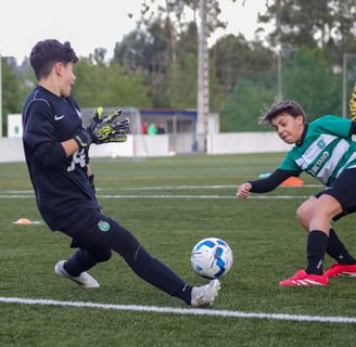 Sessões específicas para guarda-redes, com foco em técnicas de defesa, posicionamento, agilidade e tomada de decisão.